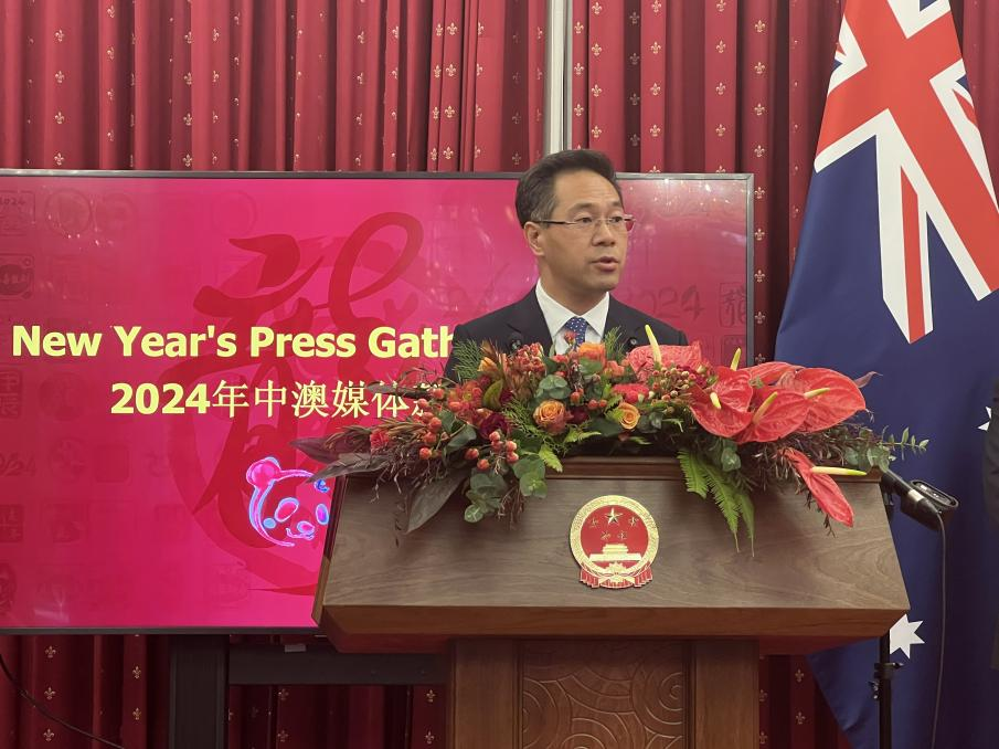 2024年1月17日,中国驻澳大利亚使馆举行中澳媒体新年酒会,肖千大使及相关部门负责人出席,同来自20余家中澳主流媒体的近40名媒体人士交流。我馆负责经商事务的高峰公参出席。